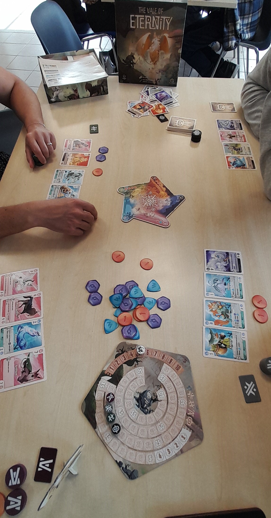 Description : Dans The Vale of Eternity, les joueurs sont des dompteurs qui chassent divers monstres et esprits pour les apprivoiser et en faire des serviteurs. Dans ce monde fantastique, de nombreuses créatures vivent en harmonie. Parmi elles, les dragons sont les plus précieux et les plus nobles, et tous les dompteurs rêvent de les apprivoiser. Le joueur qui réussit à apprivoiser le plus grand nombre de serviteurs gagne.