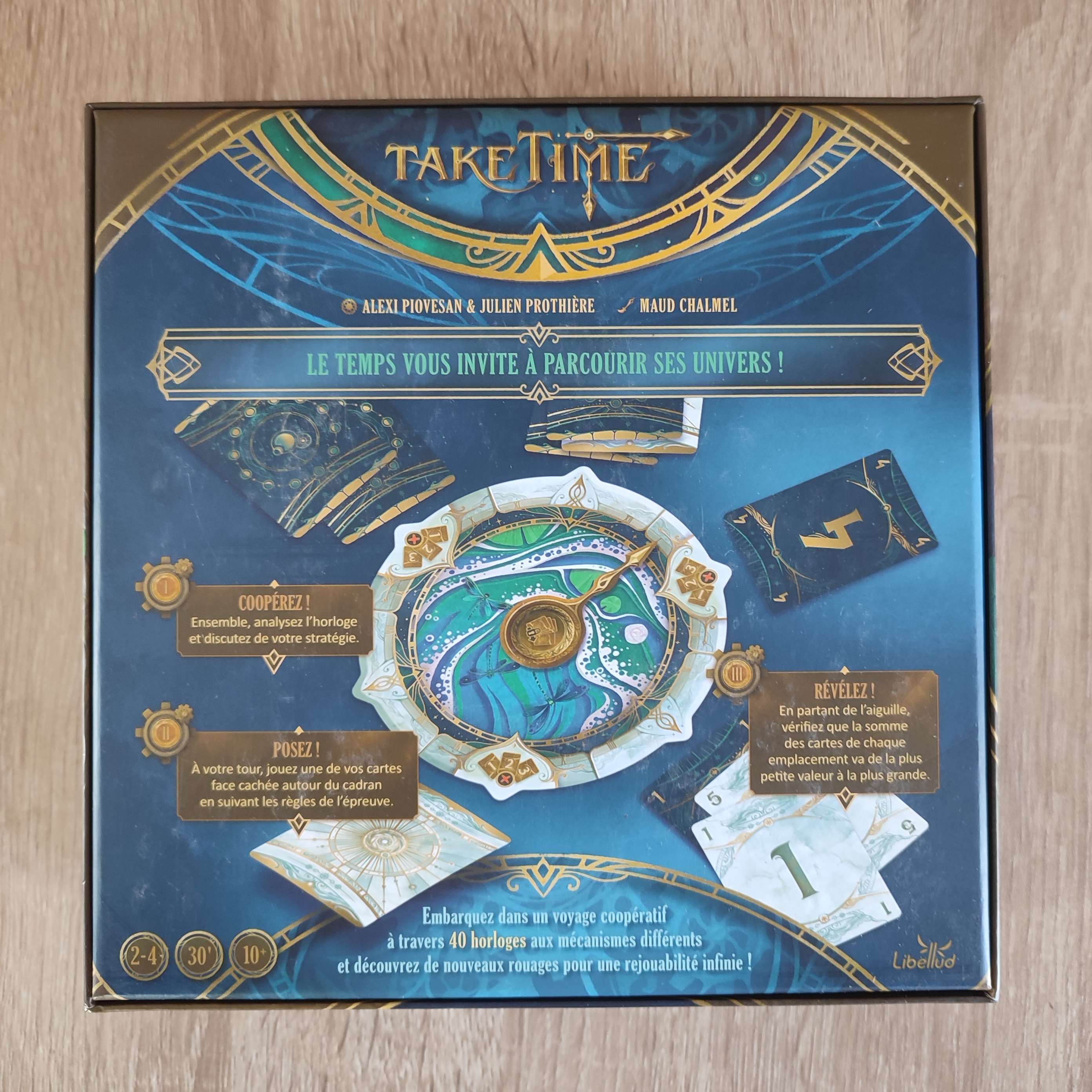Description : Take Time promet un véritable challenge collectif, dans la même veine que The Mind en mieux mieux mieux , ou encore Tranquillité, qui mettra à l’épreuve votre esprit de déduction., , , Chaque horloge renouvelle l’expérience. Derrière son apparente simplicité se cache un défi unique, conçu pour mettre à l’épreuve votre sens de l’anticipation, votre écoute mutuelle et votre capacité à penser comme un seul groupe. Take Time valorise l’échange, l’observation et la prise de décision collective. C’est un jeu qui fait la part belle à la cohésion d’équipe et à l’ingéniosité partagée.