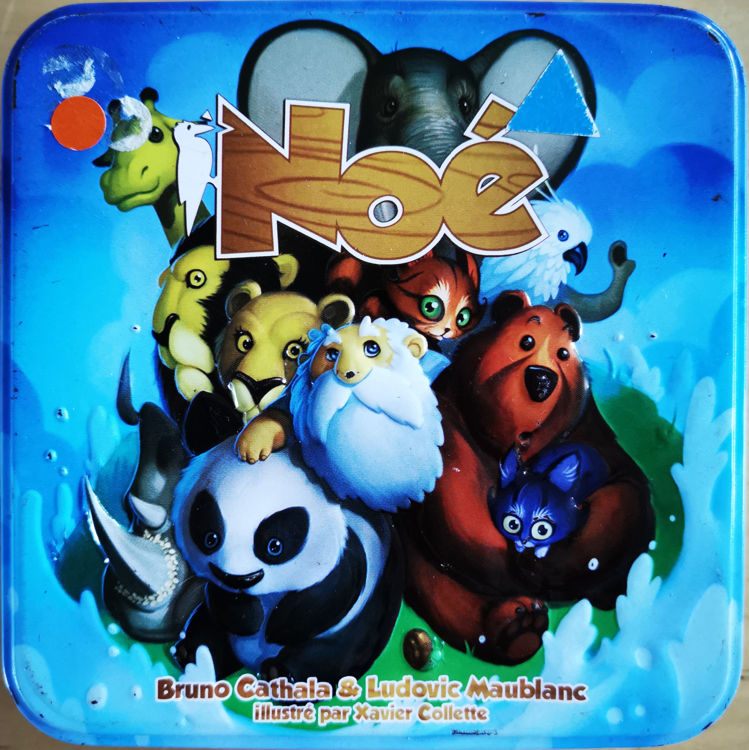 Matériel : 1 règle du jeu, 1 plateau (4 pièces), 1 pion noé, 5 pions score, 60 cartes.