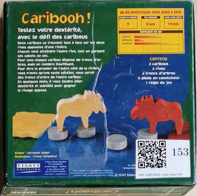 Matériel : 1 règle du jeu, 2 caribous, 2 morceaux de rive, 6 troncs d'arbres.