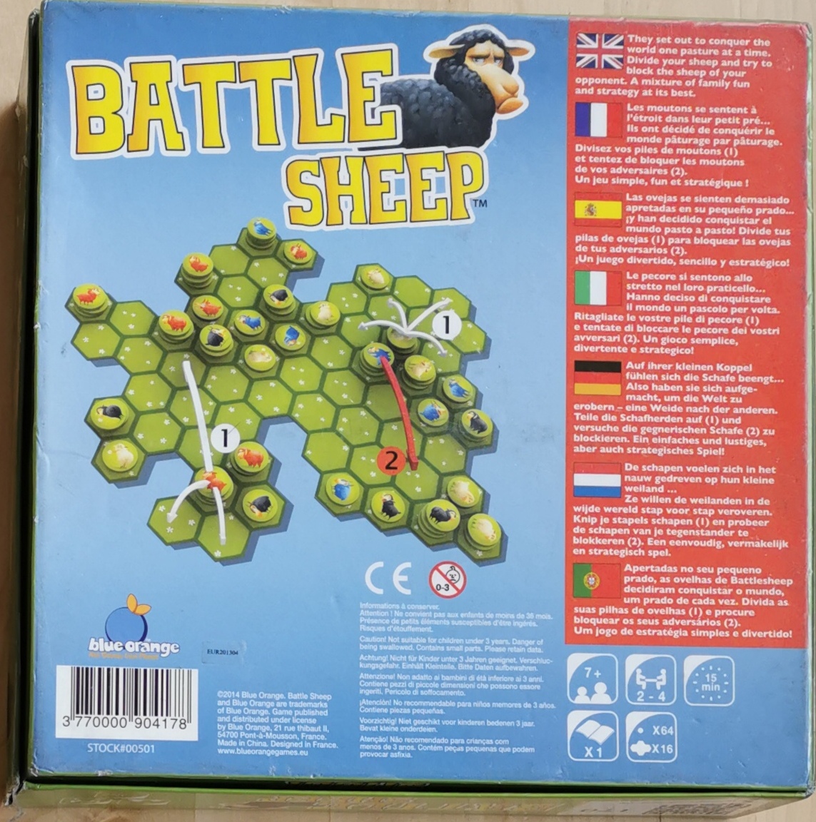 Matériel : 1 règle du jeu, 16 tuiles de pâturage, 64 moutons