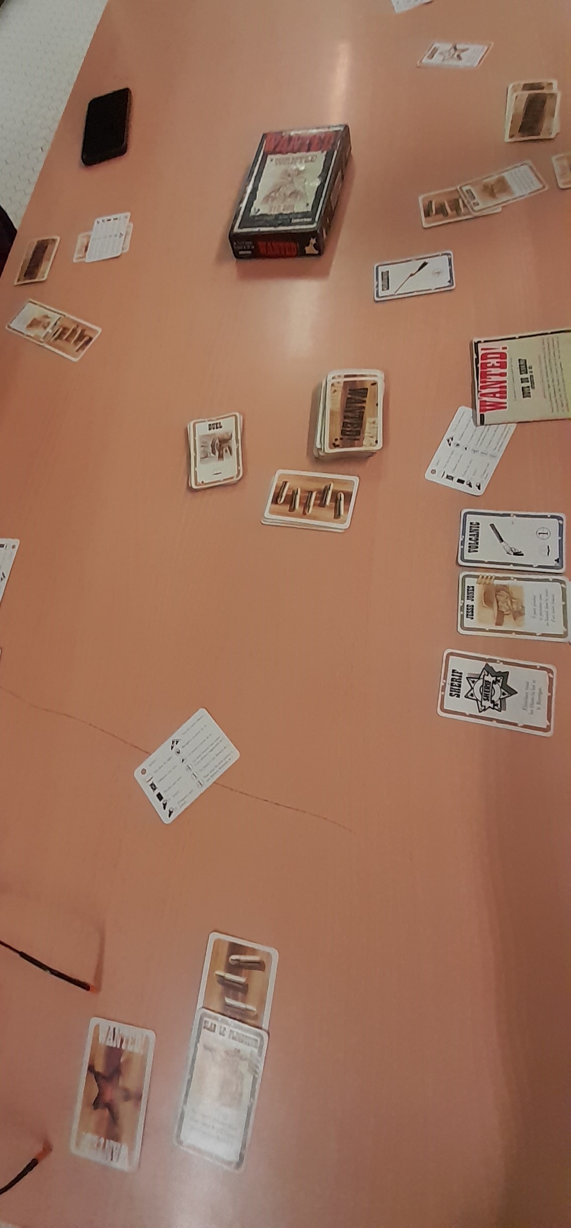 Matériel : 7 cartes rôle (1 shérif, 2 adjoints, 3 hors la loi, 1 renégat), 7 cartes "aide de jeu",, 16 cartes personnages, 80 cartes de jeu.