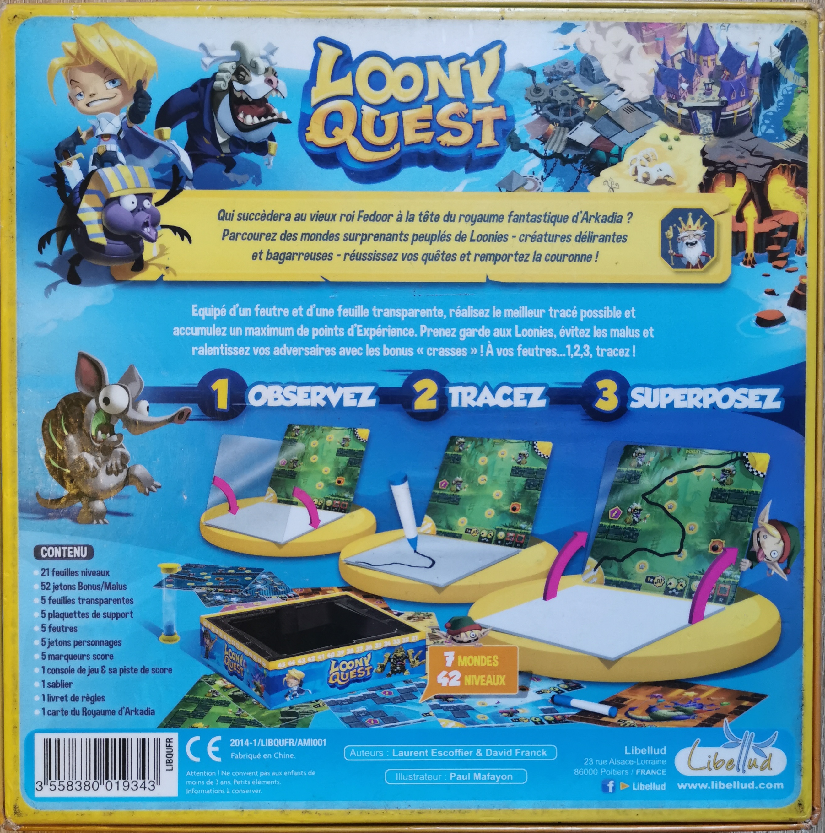 Matériel : 2 règles du jeu ( de base + extension), 2 posters, 5 transparents, 5 plateaux blancs, 1 plateau "support", 5 jetons, 5 batons "personnage", 1 pyramide, 34 fiches de jeux, 32 jetons verts "bonus", 29 jetons oranges "malédiction"