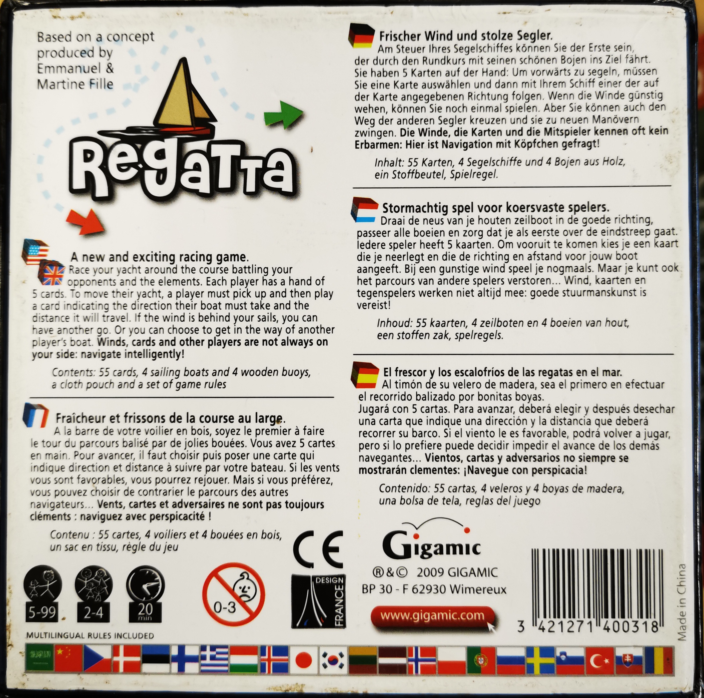 Matériel : 1 règle du jeu, 53 cartes, 4 bateaux, 4 bouées, 1 sac.