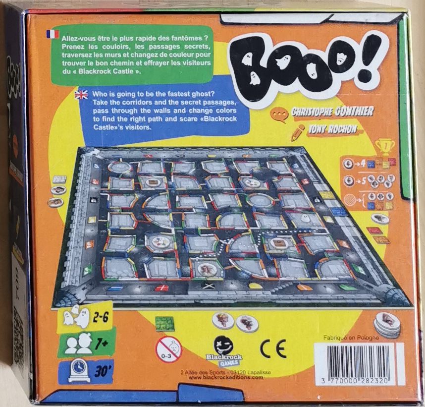 Description : Booo ! est un jeu d’observation et de rapidité simple et original, où il faut trouver le chemin le plus court entre le fantôme et les visiteurs qu’il veut effrayer !