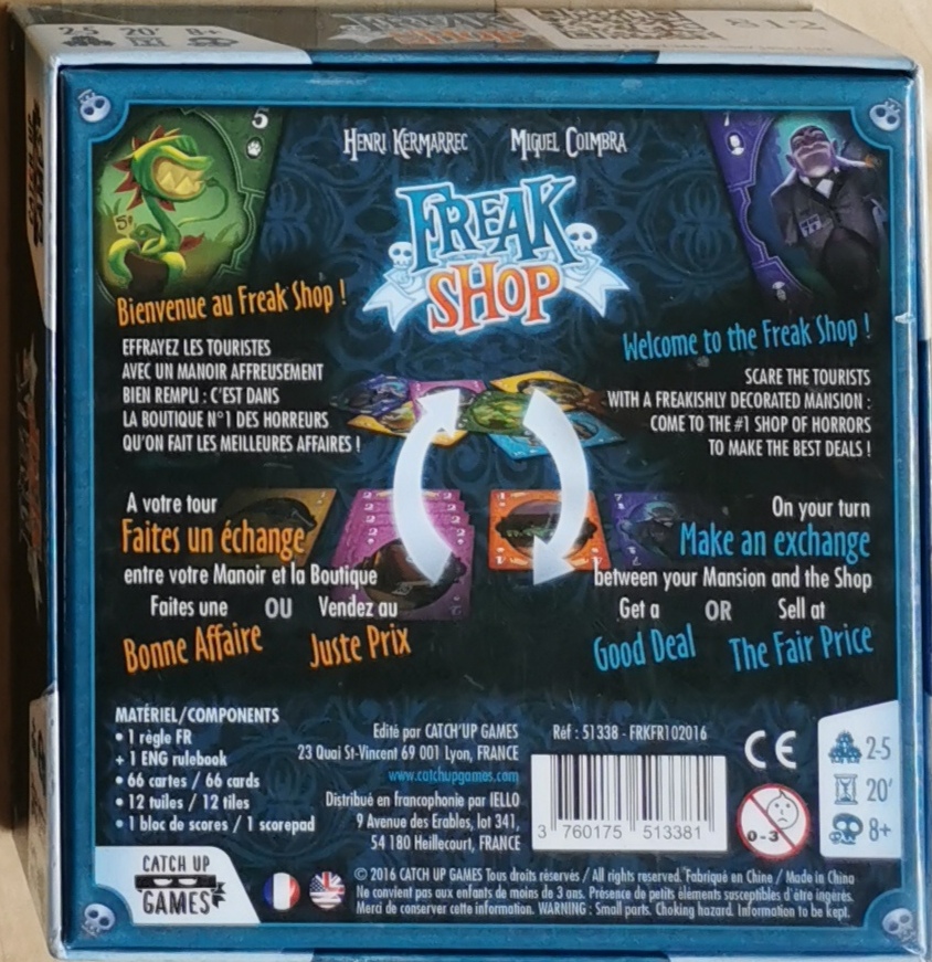 Description : C’est la cohue au Freakshop à l’approche de la saison touristique. En bon châtelain, vous comptez dégoter dans cette boutique les horreurs qui feront de votre manoir le lieu de villégiature le plus inoubliable de la région !, , Dans le jeu Freak Shop, vous allez tenter d'effrayer les touristes avec un manoir affreusement bien rempli. Et c'est dans la boutique n°1 des horreurs qu'on fait les meilleurs affaires.