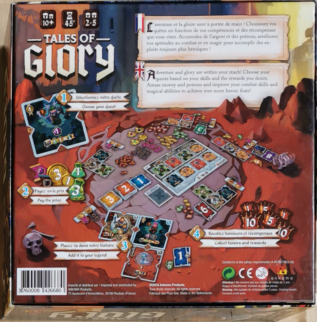 Description : Tous les héros doivent prouver leur valeur ! Chaque tour de jeu représente un an de la vie de votre héros, et vous êtes le seul décideur de la quête que va accomplir votre héros lors de cette période (combattre des monstres, chercher des trésors, rencontrez des personnages,...) afin de gagner de la gloire. Le joueur rentrant dans son royaume avec le plus de gloire après 10 ans d’aventures sera déclaré vainqueur !