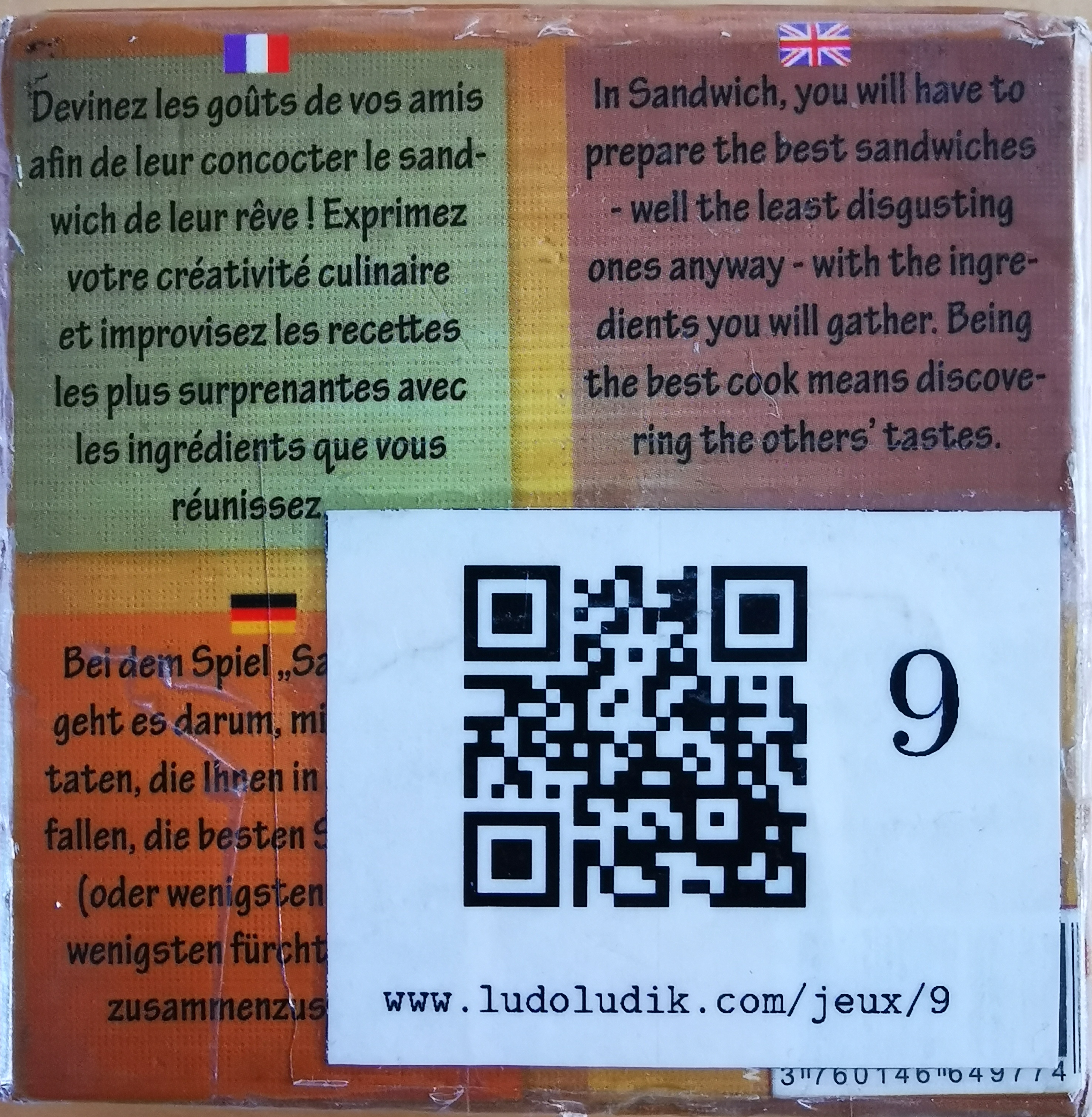 Description : Le but du jeu est de préparer les sandwichs correspondant le mieux aux goûts de vos amis. N'hésitez pas à être créatif...