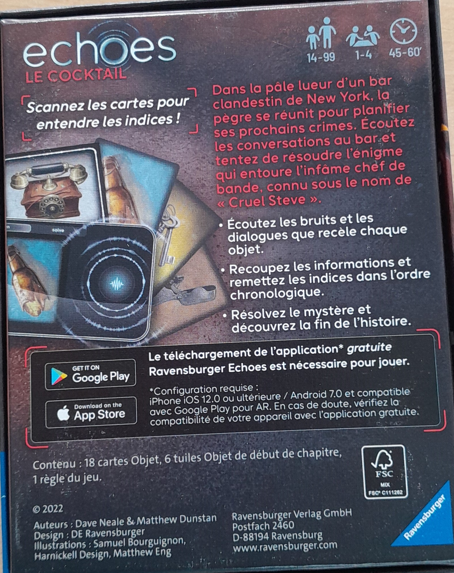 Description : Dans Echoes, vous faites partie d'une équipe d'enquêteurs très particuliers. Vous avez le don de percevoir des bruits et des voix mystérieuses émanant des objets : les fameux "échos du passé". Grâce à vos capacités uniques, faites parler ces objets et résolvez l'énigme qu'ils recèlent en remettant dans l'ordre les différents fragments de l'histoire et ainsi reconstituer les faits. Parviendrez vous à élucider ce qui s'est vraiment passé ?
