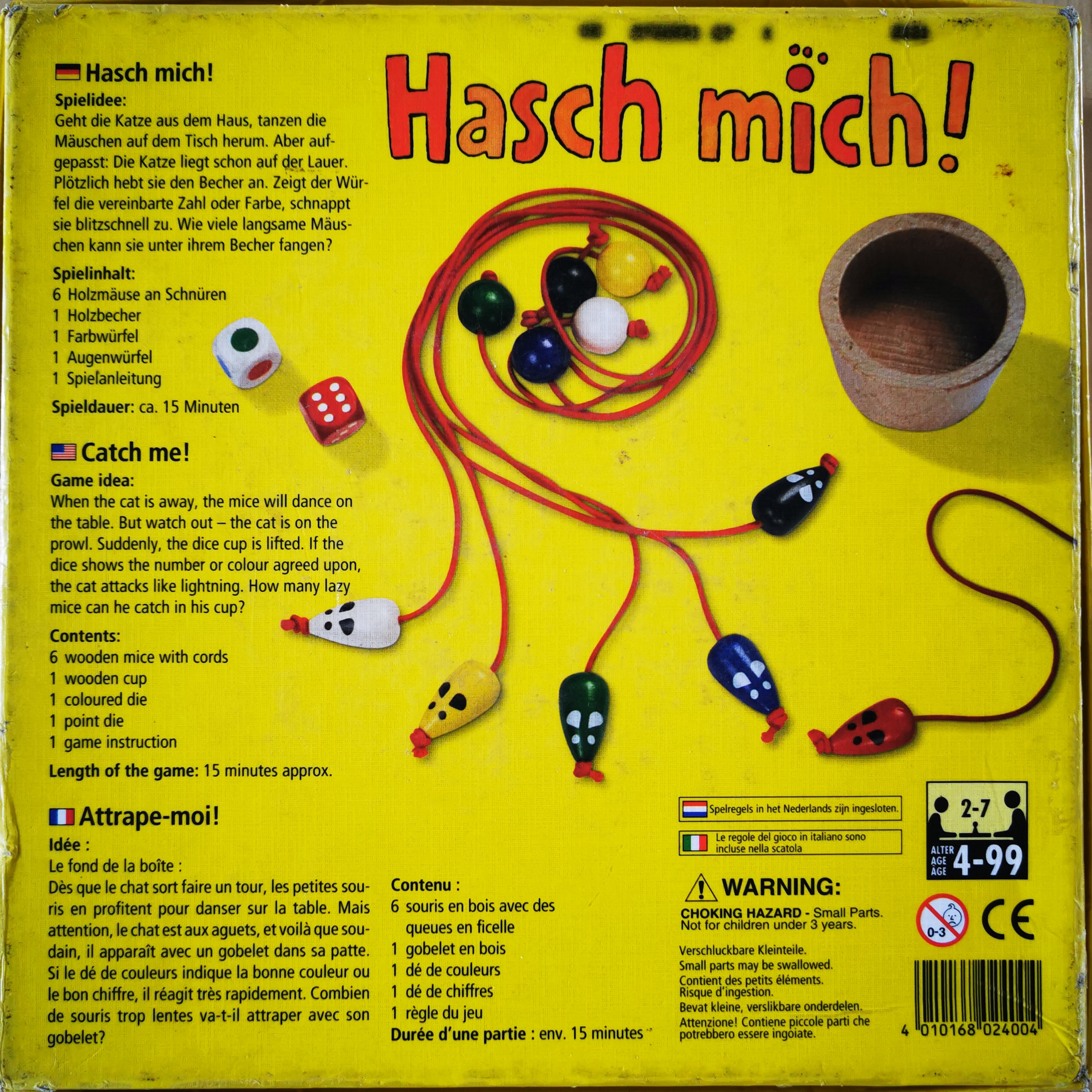 Matériel : 1 règle du jeu, 1 gobelet, 6 souris, 2 dés