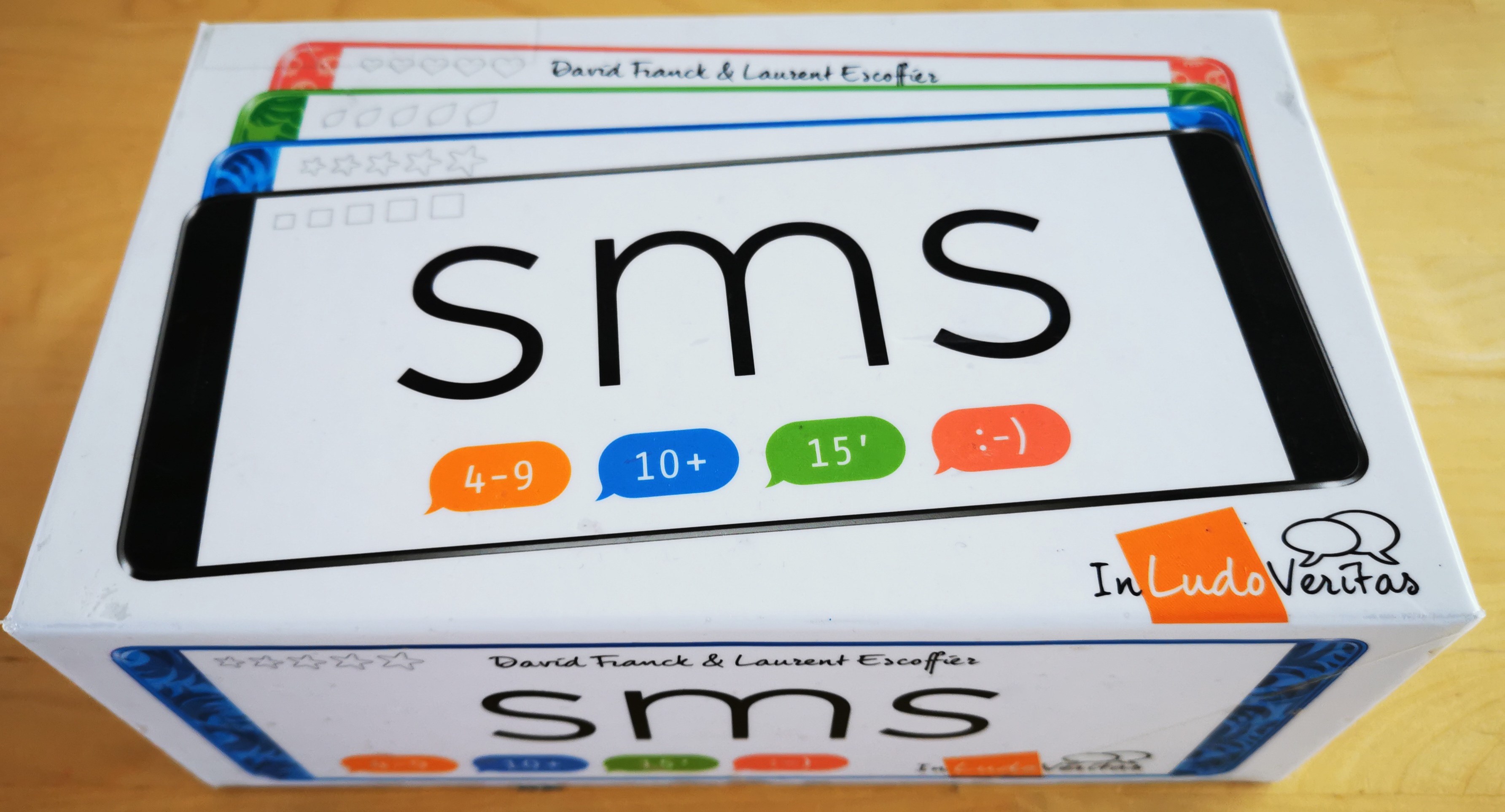 Matériel : 9 "téléphones", 9 feutres effaçables, 200 cartes (1200 mots), 1 sablier, 1 livret de règles.