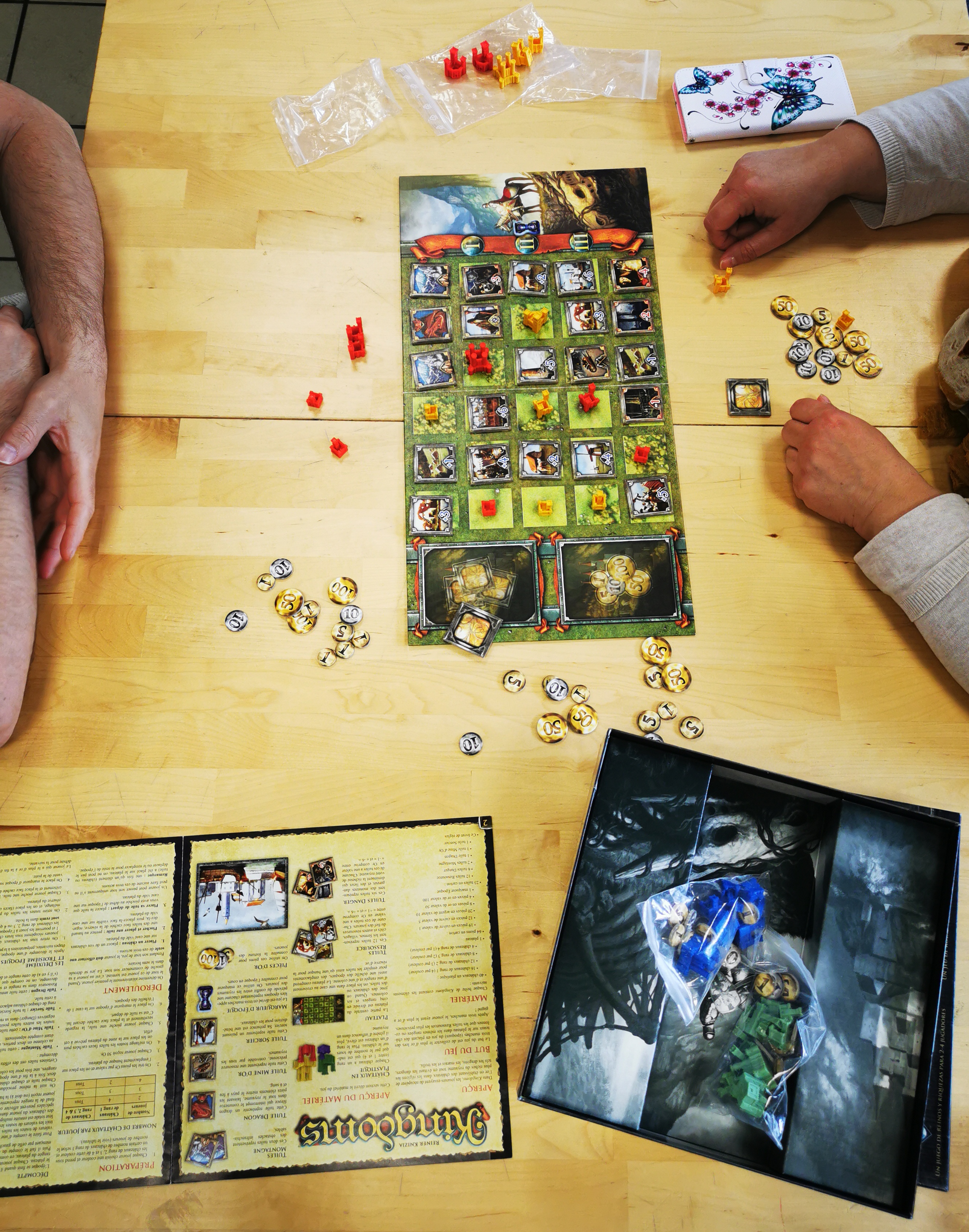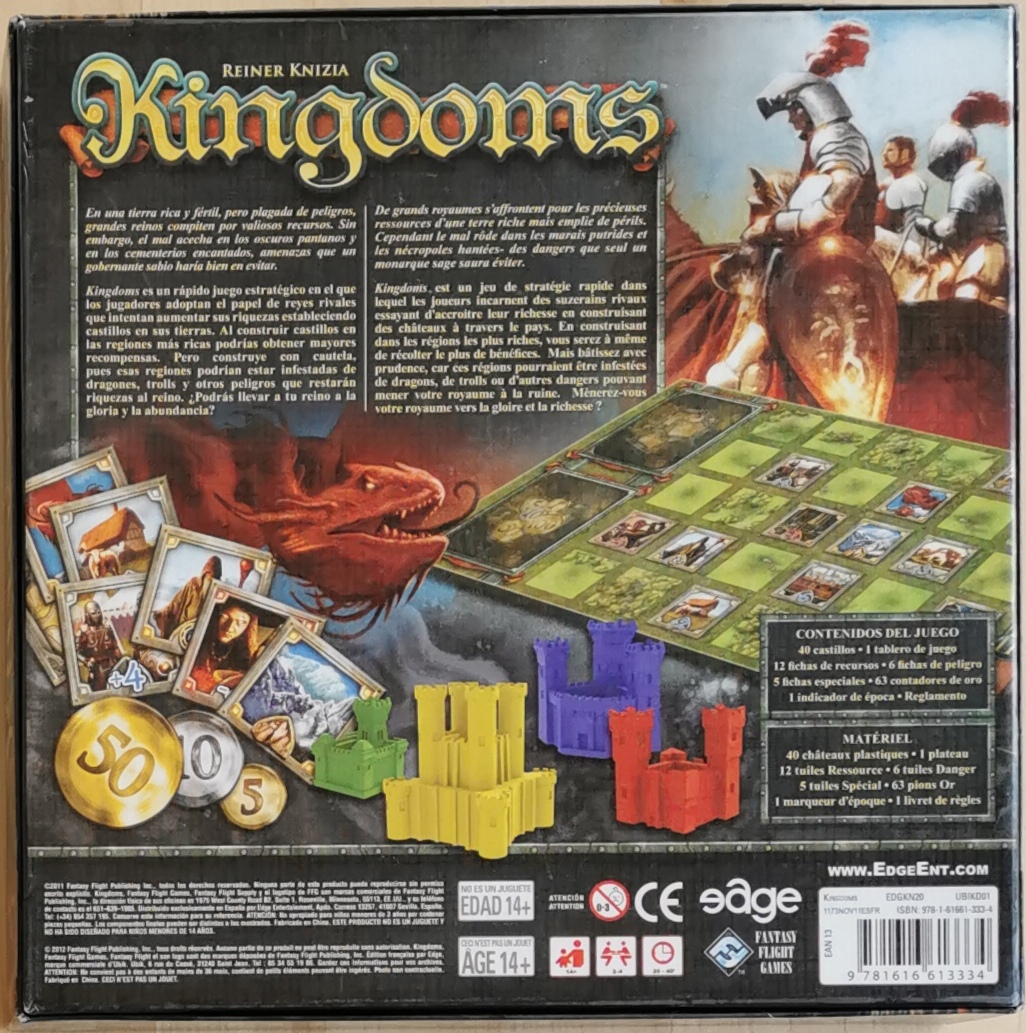 Description : Le but du jeu est de collecterl e plus d'or lors des trois manches (époques) du jeu en plaçant des châteaux sur le plateau dans les mêmes rangées ou colonnes que les tuiles Ressources les plus précieuses. Après 3 manches, le joueur ayant le plus d'or a gagné !