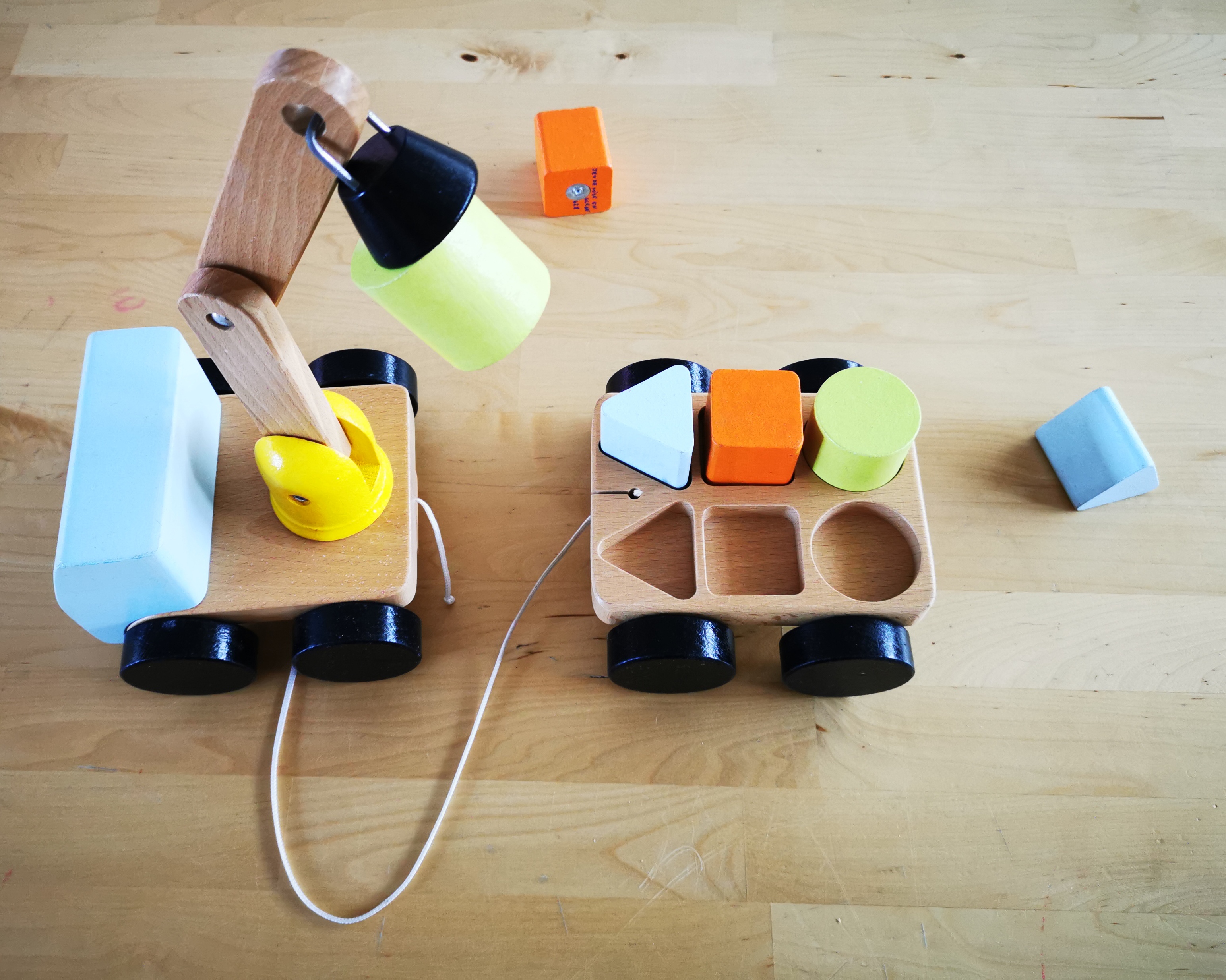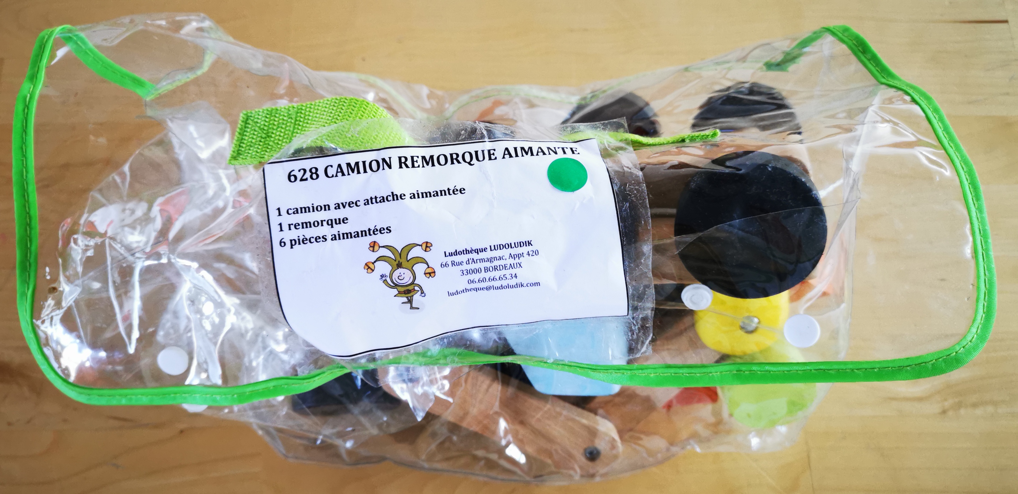 Matériel : 1 camion avec attache aimantée, 1 remorque, 6 pièces aimantées.