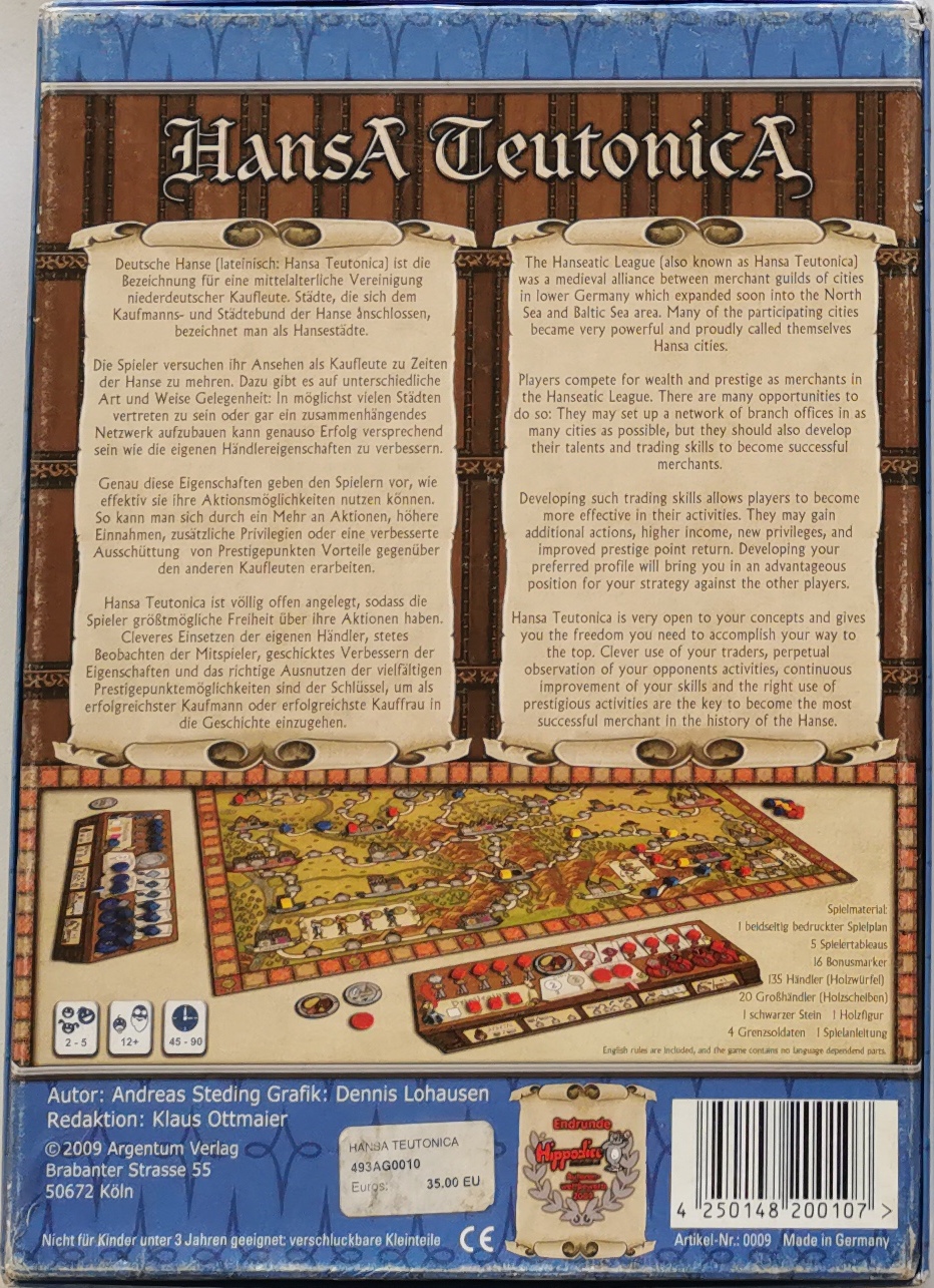 Description : Dans Hansa Teutonica, en tant que marchand de la célèbre ligue hanséatique, vous devez faire prospérer vos réseaux commerciaux, établir des comptoirs dans des nouvelles villes et ainsi obtenir le plus de points de prestige
