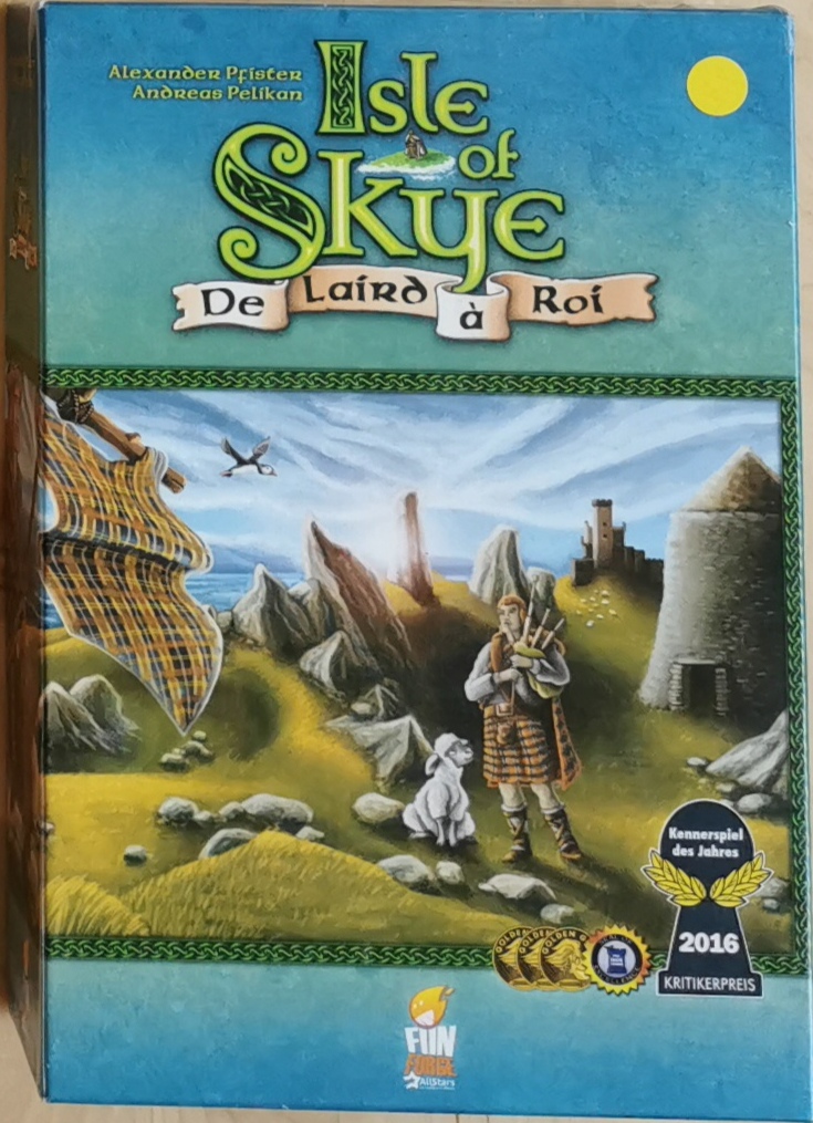 Description : L'île de Skye est une île magnifique avec ses plages de sables, ses douces collines et ses montagnes impressionnantes : un paysage à couper le souffle. Dans ce jeu de tuiles, les joueurs sont des chefs de clans et vont devoir construire leur royaume.