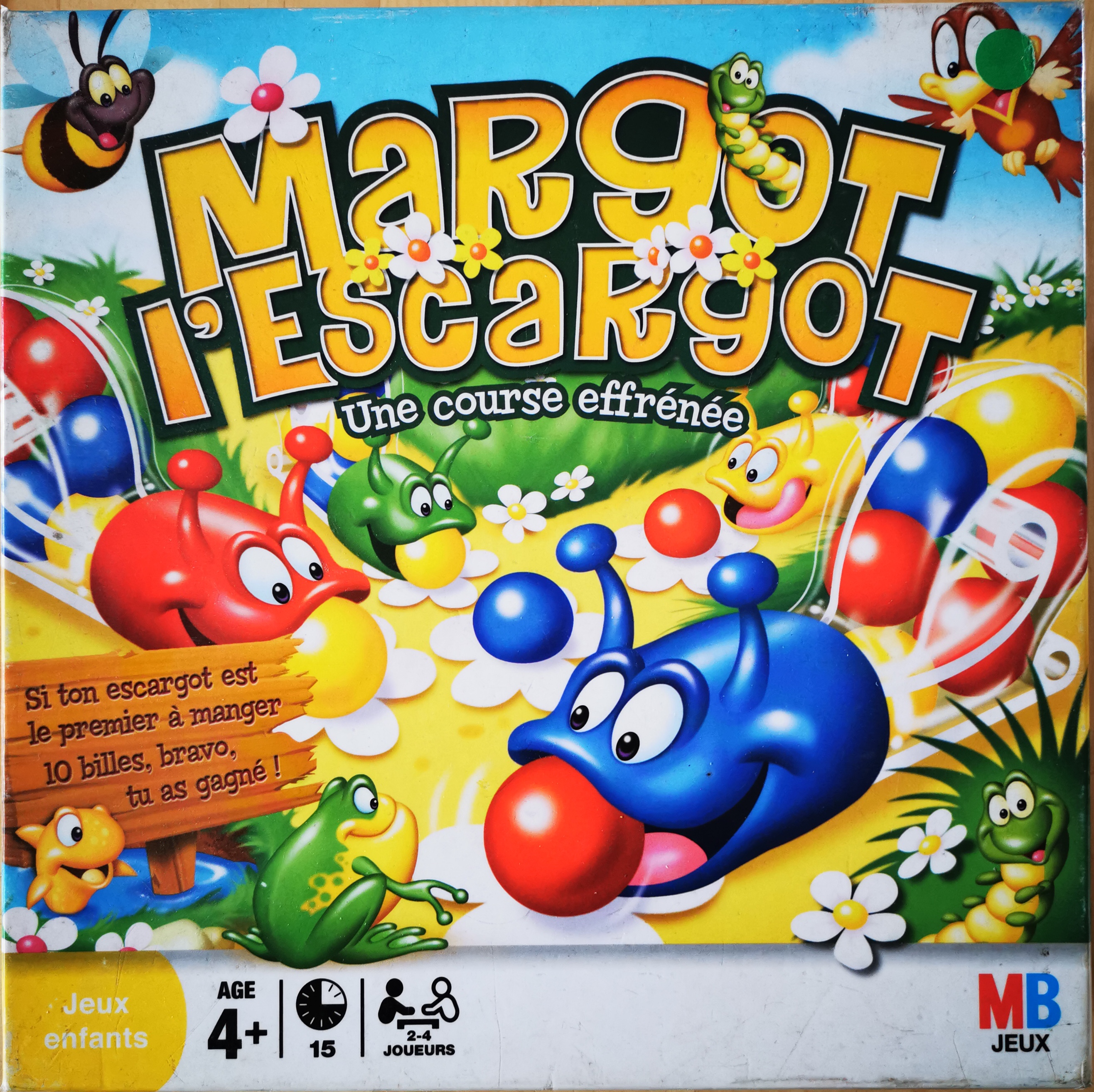 Description : Des petits escargots doivent manger des petites billes (3 couleurs) posées sur les différents chemins qui mènent à l'étang. À chacun son escargot, il faut être le premier à lui faire manger dix billes.