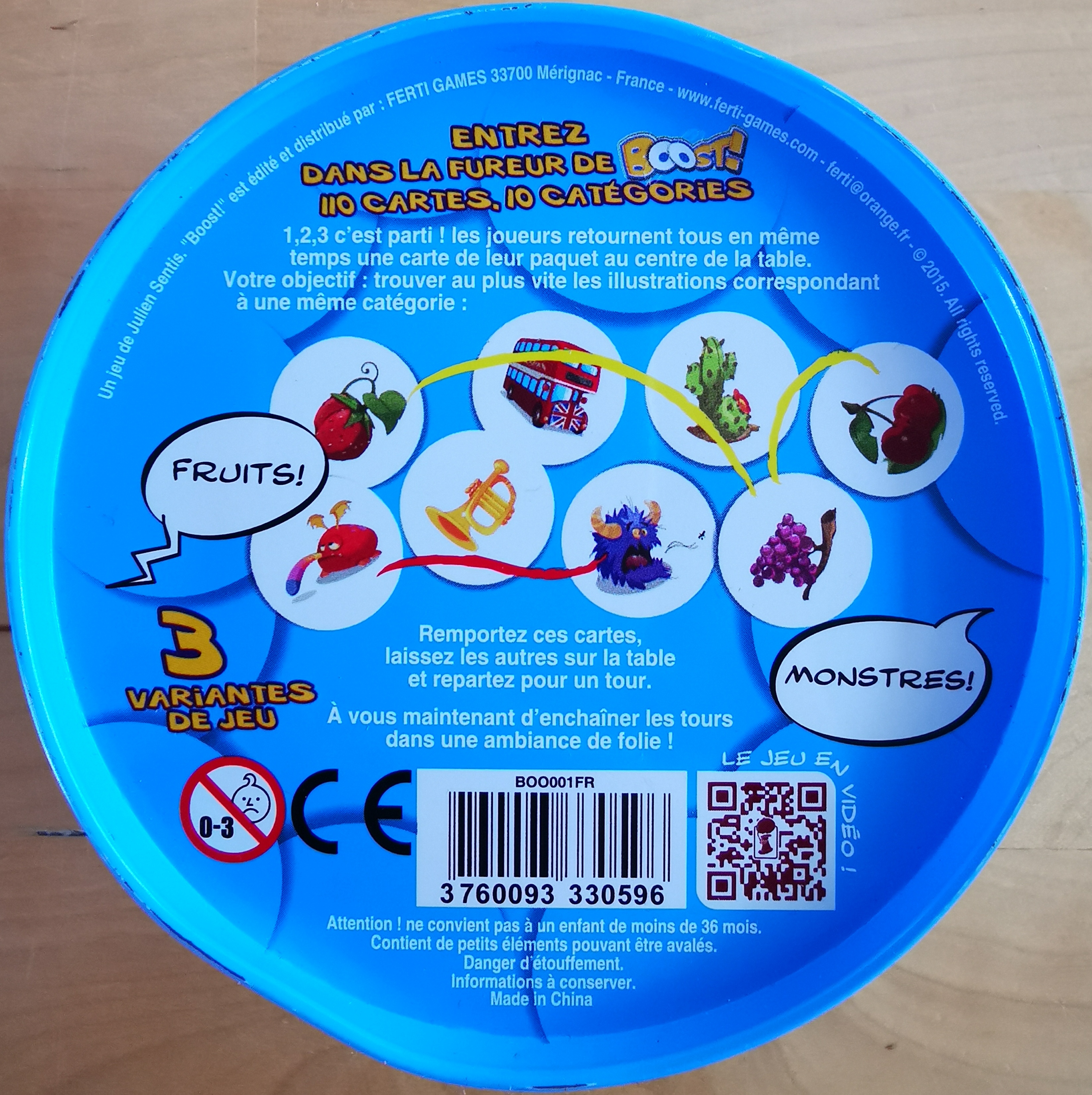 Description : Les cartes sont réparties équitablement entre tous les joueurs. Ces derniers retournent en même temps une carte au centre de la table., , L'objectif est de trouver au plus vite les illustrations correspondant à une même catégorie.