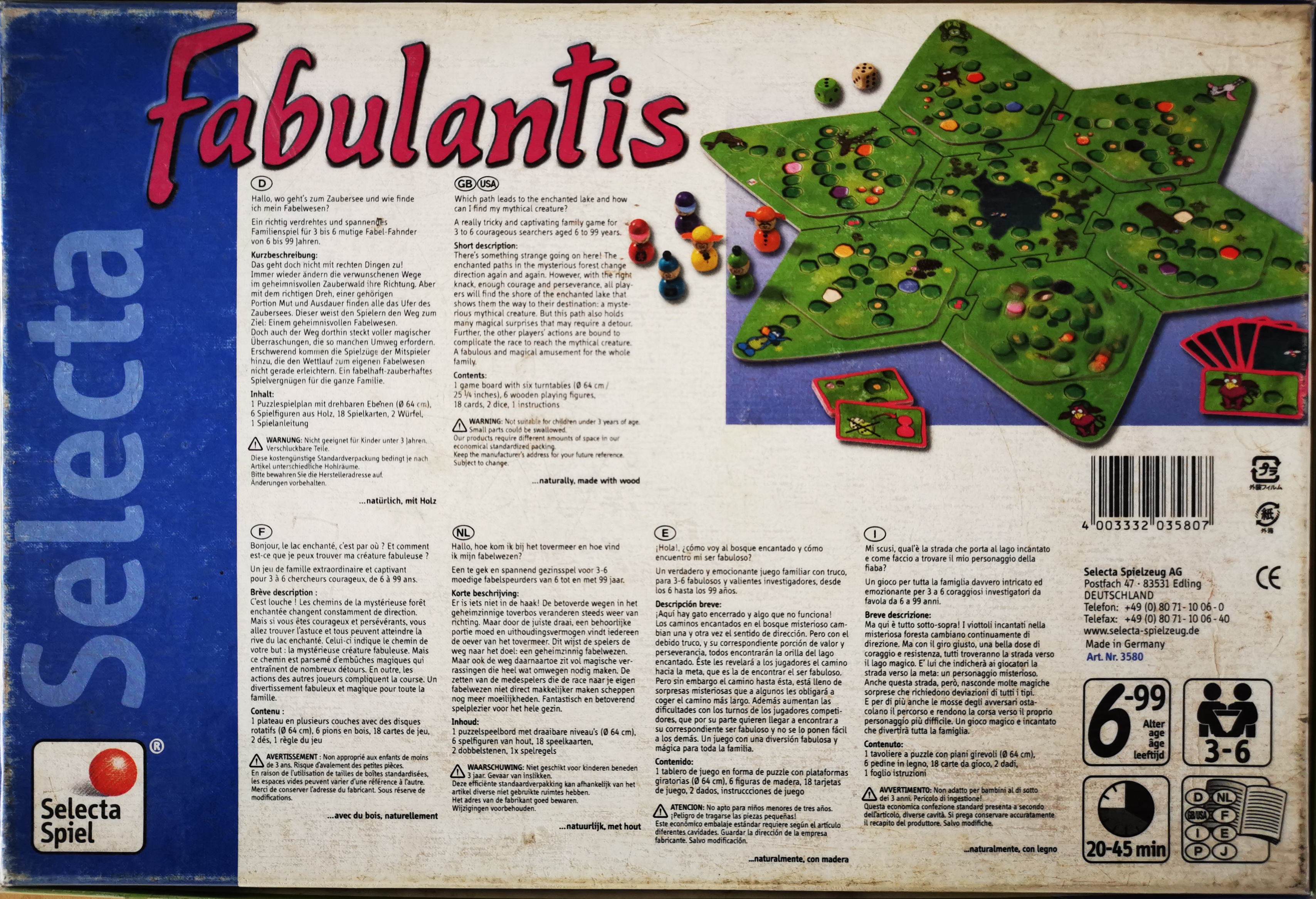 Matériel : 1 plateau en 7 parties, 6 personnages en bois, 2 dés, 18 cartes, 1 règle du jeu