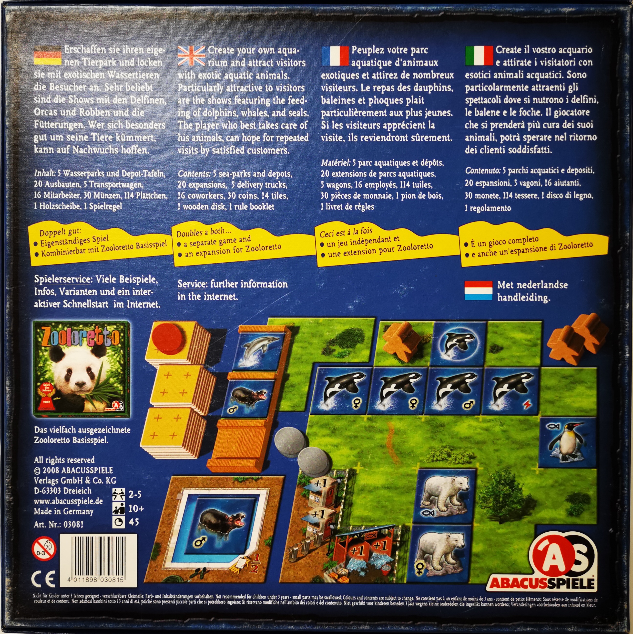 Commentaire : Extension indépendante du jeu Zooloretto. Peut se jouer avec ou sans donc.