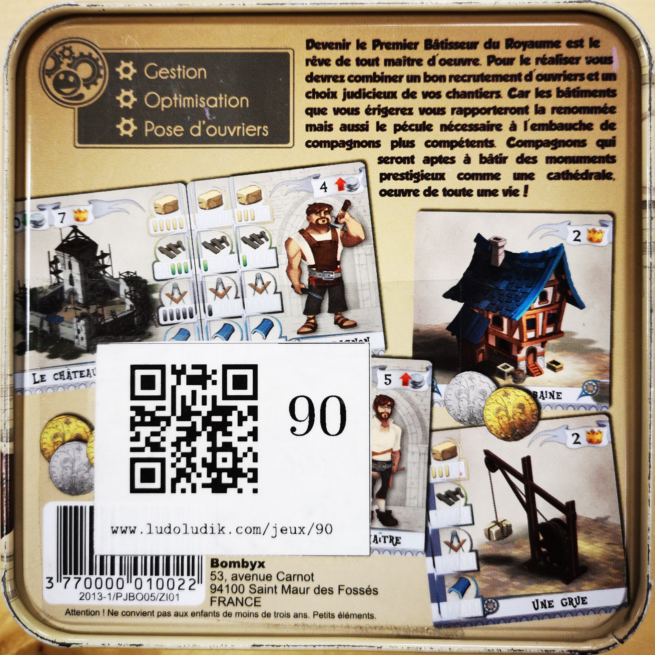 Matériel : 1 règle du jeu, 42 cartes ouvriers, 42 cartes bâtiments, 38 pièces.