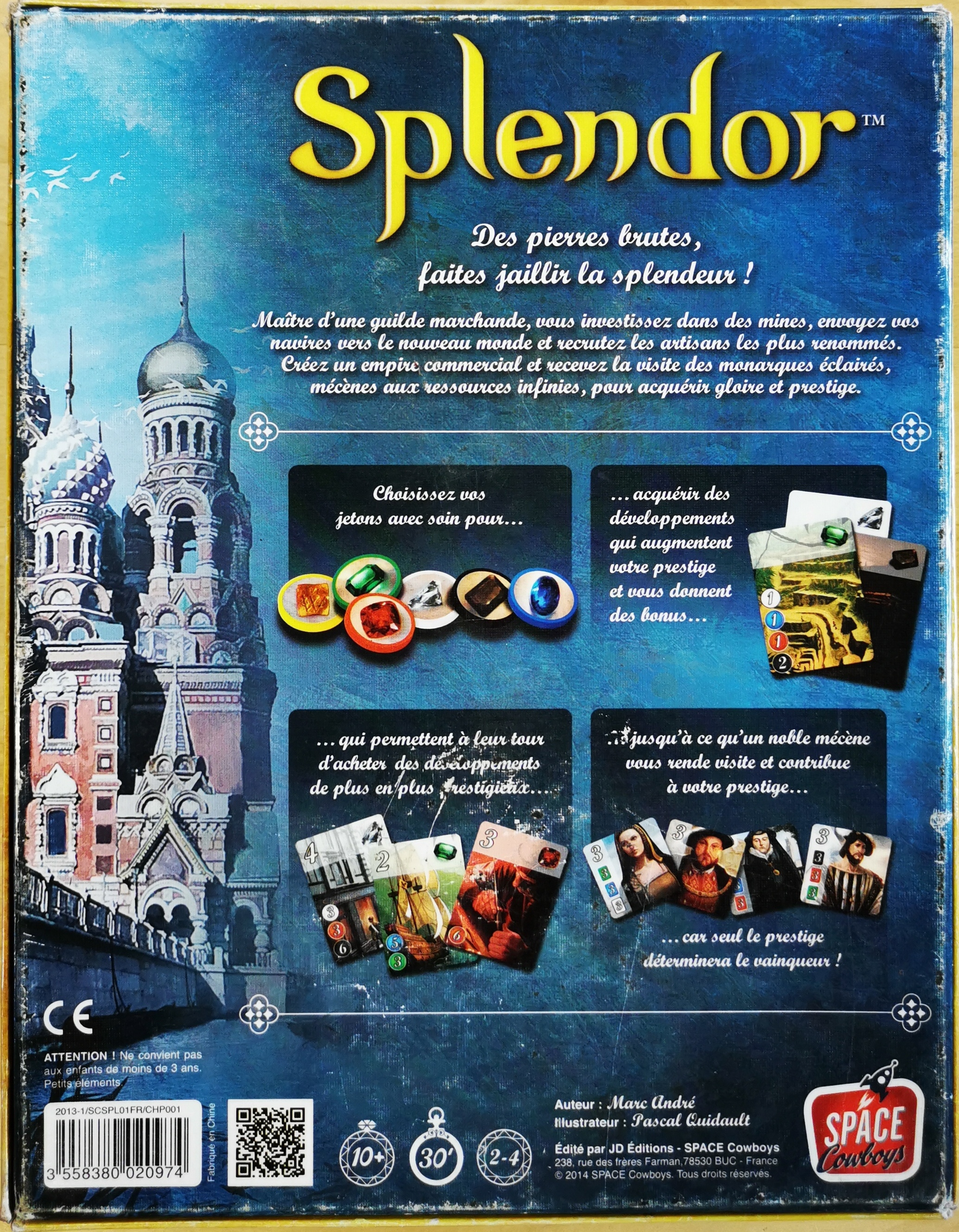 Matériel : 40 Jetons, 90 cartes, 10 tuiles Nobles et 2 tuiles Nobles Goodies, 1 règle du jeu