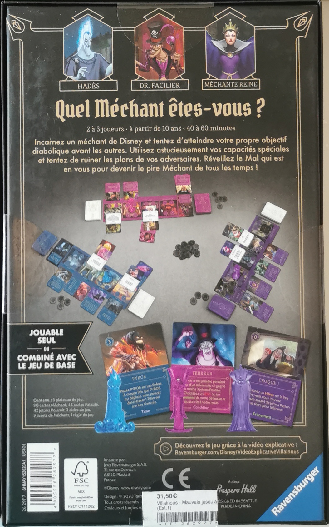 Description : Cette extension de Villainous peut se jouer seule ou avec le jeu de base. Elle apporte Hadès, Dr Facilier, Méchante Reine.
